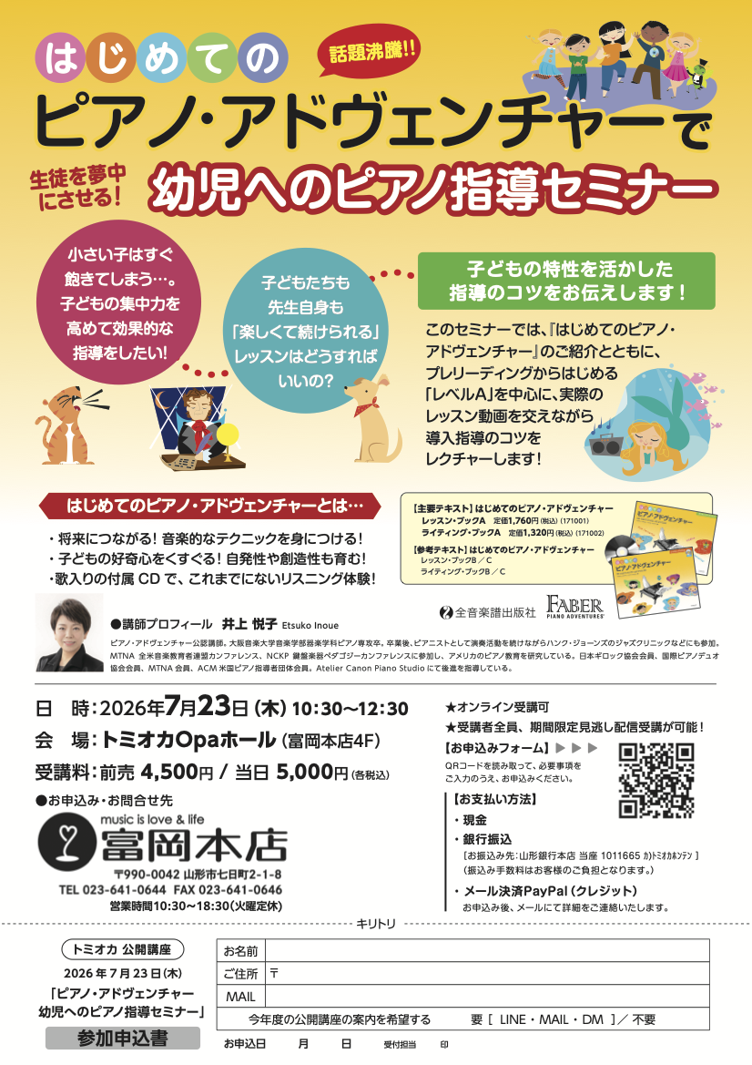 【トミオカ公開講座2026】ピアノ指導者向けセミナー開催のご案内